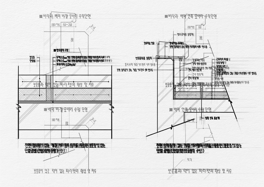 아스팔트 방수의 뜻과 하지 조건 그리고 밀착공법 및 절연공법, 단열공법에 의한 방수층 및 보호층의 구성 …